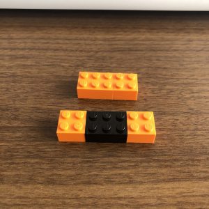 帽子部分も手前のレゴを奥に順番に重ねていきます!